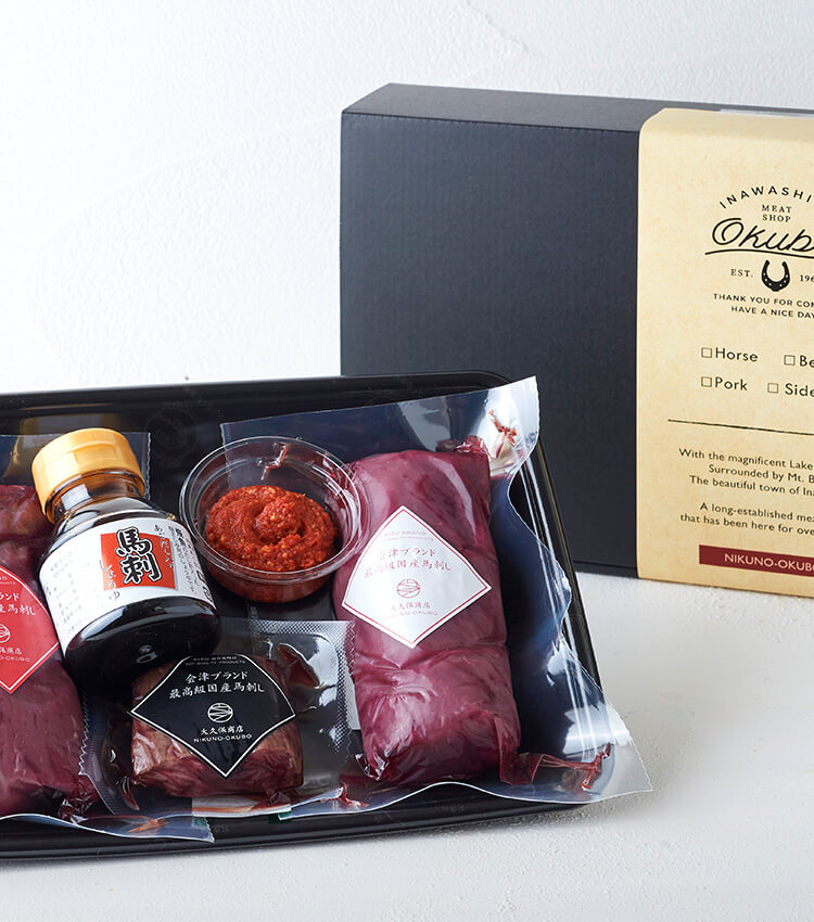 日頃より「肉のおおくぼ」をご愛顧いただき、誠にありがとうございます。こちらは当店の“ギフトカード”をご利用の方、専用のページです。自慢の馬刺しをはじめ、“福島牛”や“匠のこころ豚”といった福島名産の銘柄肉もご用意。きっとお気に召す商品が見つかるはずです。下記ラインナップからお好きなものをお選びのうえ、メールフォームからご依頼ください。